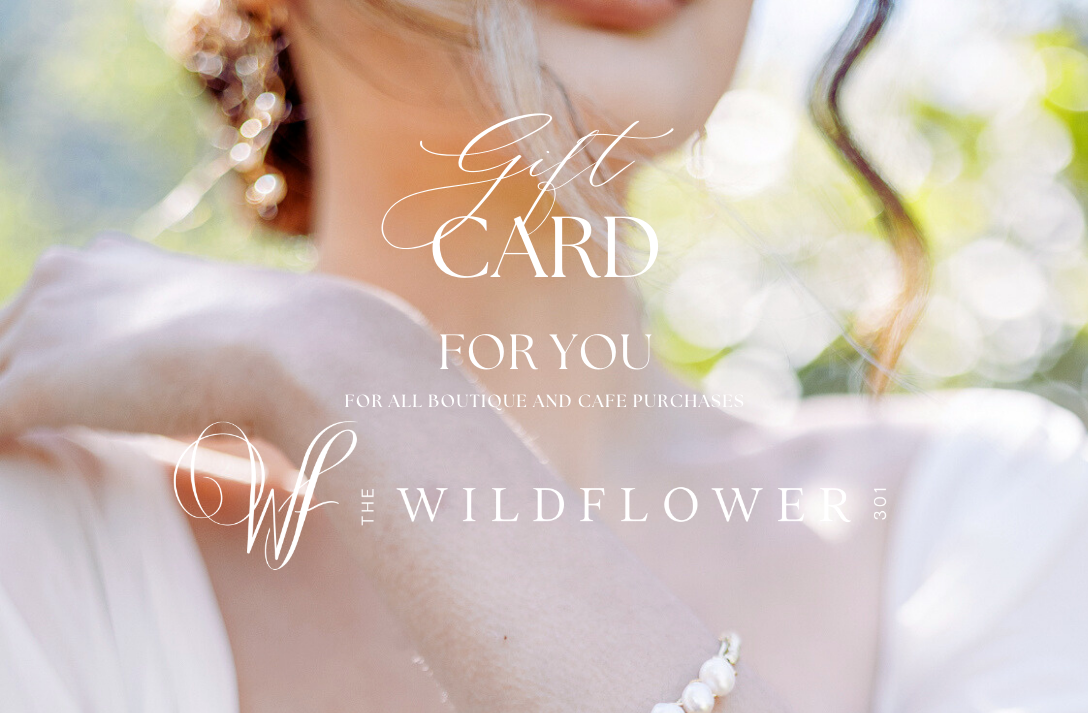 By purchasing you understand and agree that this electronic gift card (“Gift Card”) is issued by Wildflower 301 and may be redeemed for eligible goods and services offered directly by Wildflower 301, including venue services, catering, floral services, boutique merchandise, and in-house coffee bar purchases.